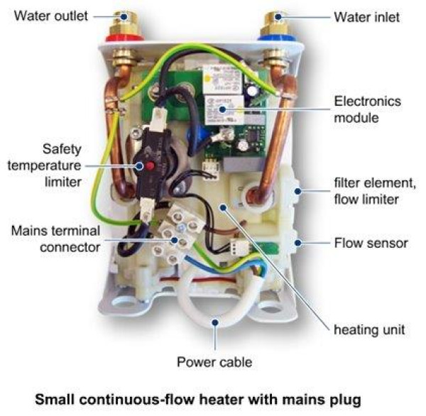 - Monofazni protočni bojler namenjen samo za umivaonike i sudopere. Podiže temperaturu vode za 30 stepeni Celzijusovih pri protoku od 3lmin (6kW). Montaža iznad ili ispod sudopereumivaonika.