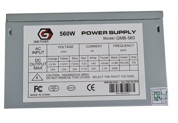 - GMB-560-12 sa kutijom ** Gembird napajanje 560W 12cm FAN, 20+4pin, 2xSATA 2xIDE 4-p. (1229)