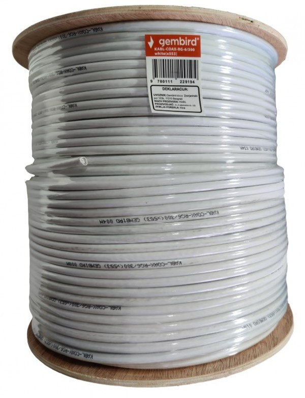 - KABL-COAX-RG6/300 white (X553) **koaksialni kabl RG6 bez konektora, conductivity 18%,6.5mm,300m 4135