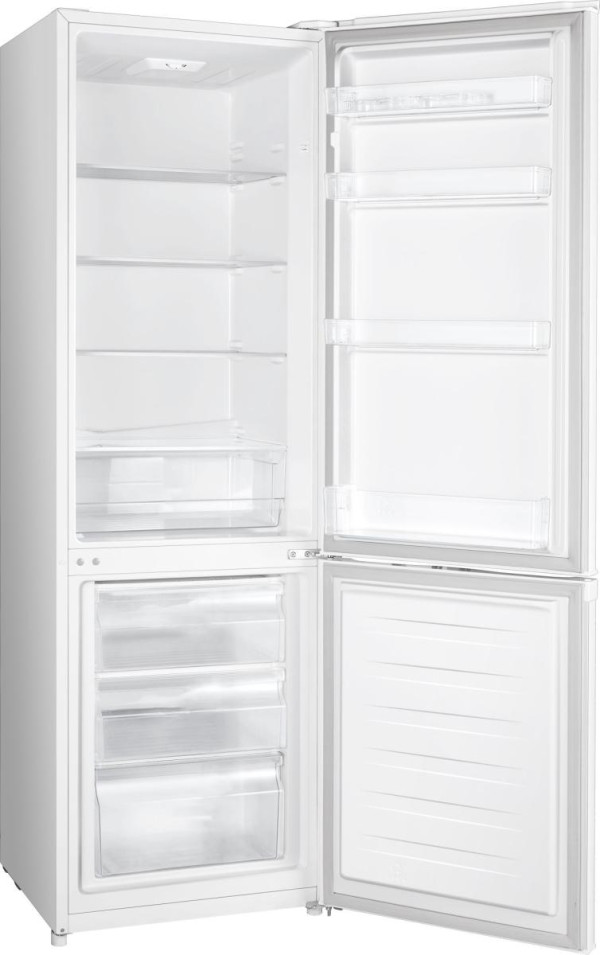 Frižider sa zamrzivačem dole,Ukupna zapremina 269 litara, Dimenzije (ŠxVxD): 55 × 180 × 55,7 cm, E en.razred, LED osvetljenje, bela boja