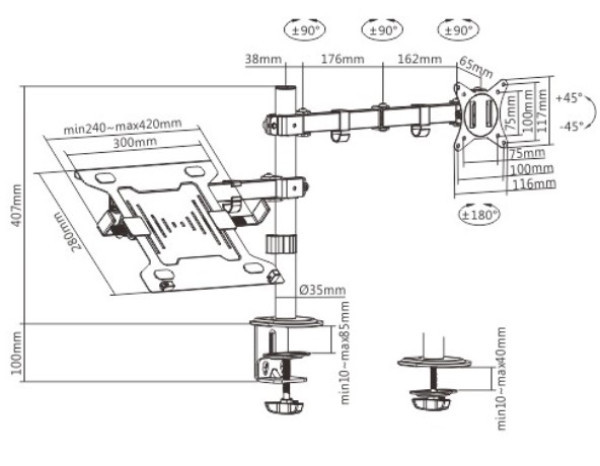 -Nosac za sto sa rukom za monitor i postoljem za notebook