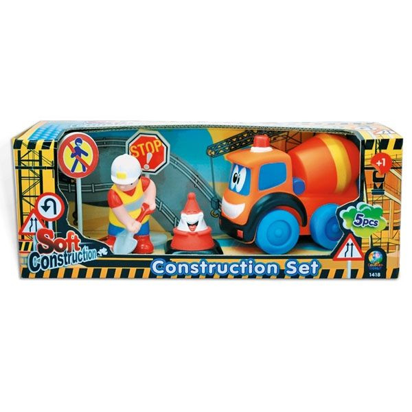 Mekani građevinski set sa gumenim figurama.