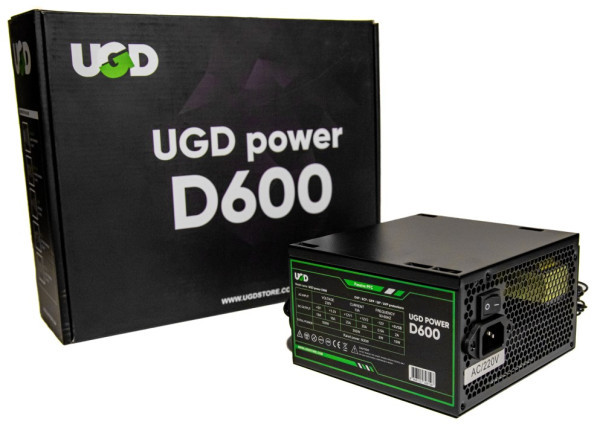 Napajanje D600 600W UGD Power 12cm FAN, 20+4pin, 4+4pin, 3xSATA, 1xIDE, 2x6+2pin Black