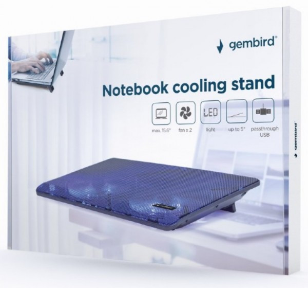 NBS-2F15-05 Gembird hladnjak za laptop, 15.6 2x125mm Fan, USB, 340x250mm, Ergo Stand