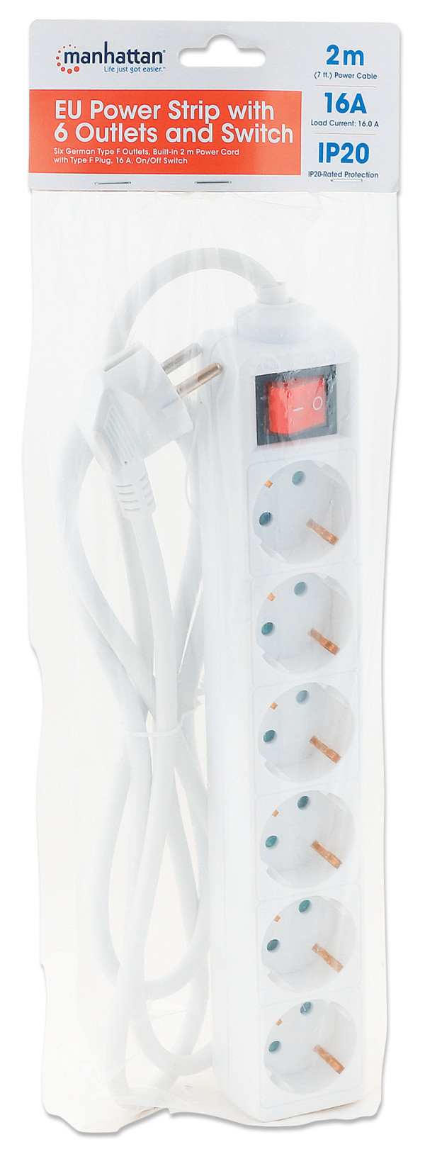 Uključite svoj štampač, računar, ruter, TV ili drugu kuc?nu/kancelarijsku elektroniku u ovaj provodnik sa 6 utičnica sa Menhetna. Kompatibilan je sa standardnom električnom opremom i ima šest nemačkih utičnica tipa F u izdržljivom belom plastičnom kuc?ištu za čist izgled. Osvetljeni prekidač za uključivanje/isključivanje omoguc?ava kontrolu jednim dodirom nad svim povezanim uređajima.