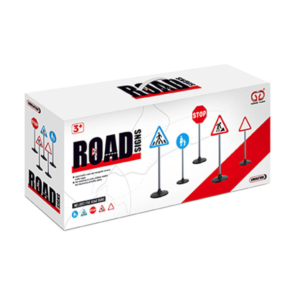 Set saobraćajnih znakova uključuje pet različitih znakova visine 70 cm, idealan za decu koja uče osnovna pravila ponašanja u saobraćaju. Ovaj edukativni set omogućava deci da naprave poligon, postavljajući znakove kako bi stvorili bezbedno okruženje za igru.