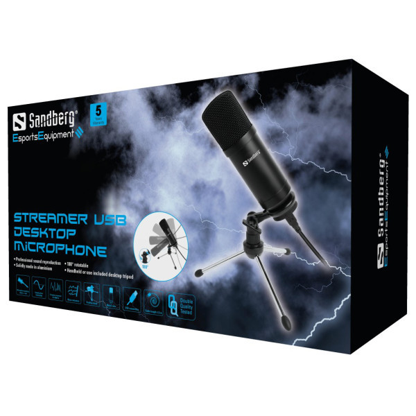 Sandberg Streamer USB Desktop Microphone is a great microphone for top-quality sound recordings for the demanding gamer and video producer. Made of robust metal and can be used either handheld or mounted on the handy tripod included. Connects to your PC via a USB port and works immediately without driver installation.