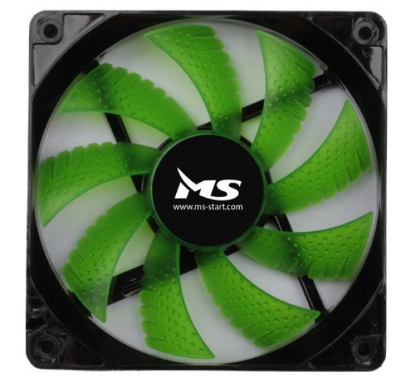MS COOL 12cm LED GREEN, prečnik 12 cm, 1000 omin, protok vazduha 74 cm3min, buka u radu 12 dB(A), radni napon: 12 V, strujni konektor: MOLEX + 3pin (43 cm)